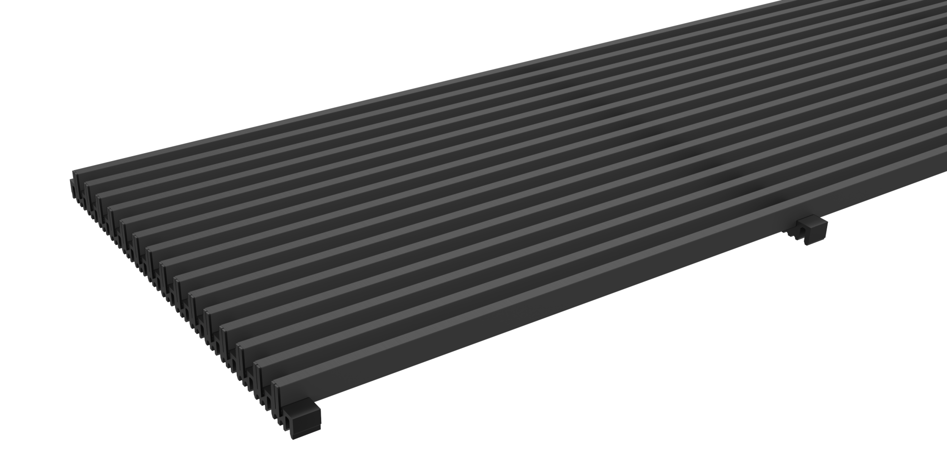 Customized solutions for projects dealing with high-raised flooring. This is a more robust model of the higher raised floor support, equipped with two supports at the base of the trench heater. The precise technical design depends on customer's requirements. Recommended for raised floors with a maximum depth 300 mm greater than the unit height of the trench heater.