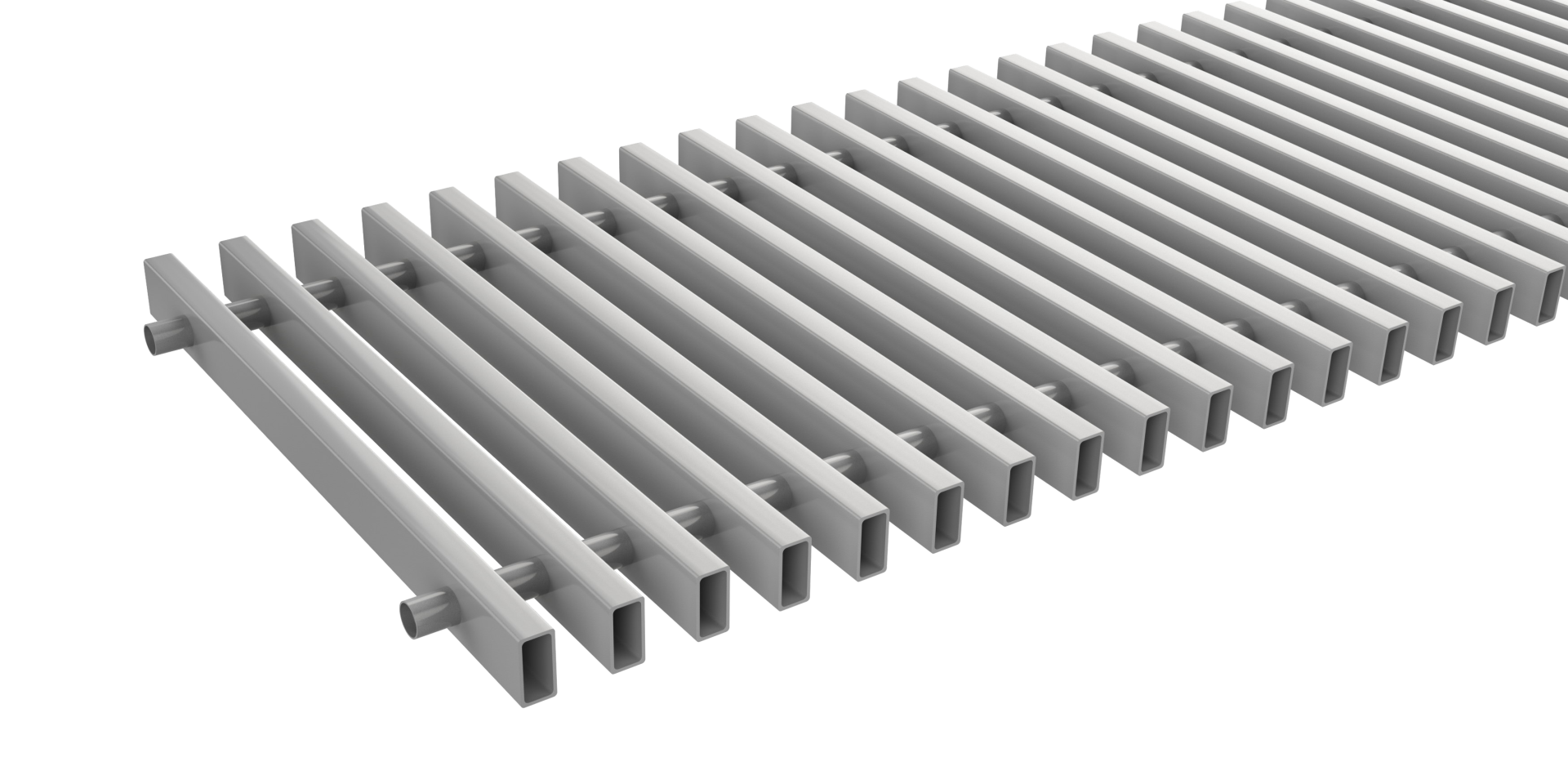 | Cross grille - design solutions - Cross grilles must be ordered with trench heaters, as the casing must undergo alteration. These trench heaters will be fitted with a Cross frame suitable for a Cross grille.