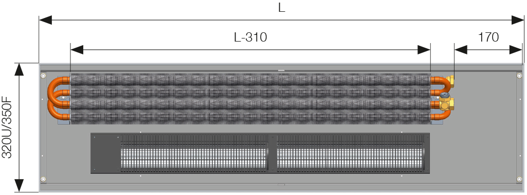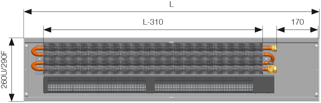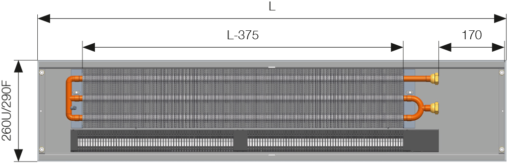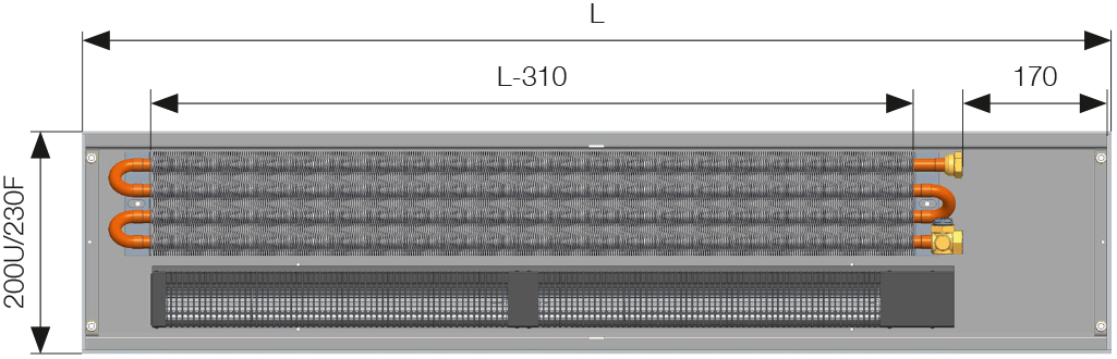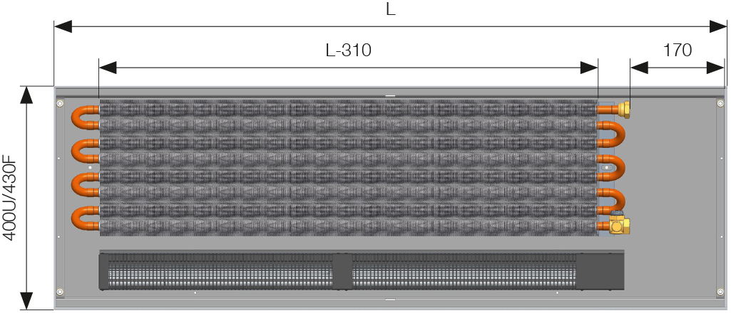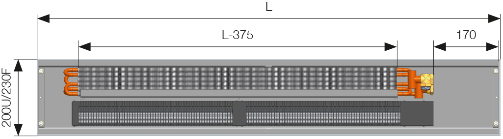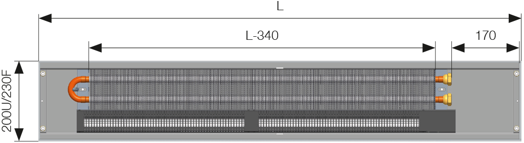 Where a linear grille is required, technical consultation is necessary, as the casing may need to undergo alteration. Linear grilles must be ordered together with trench heaters. |