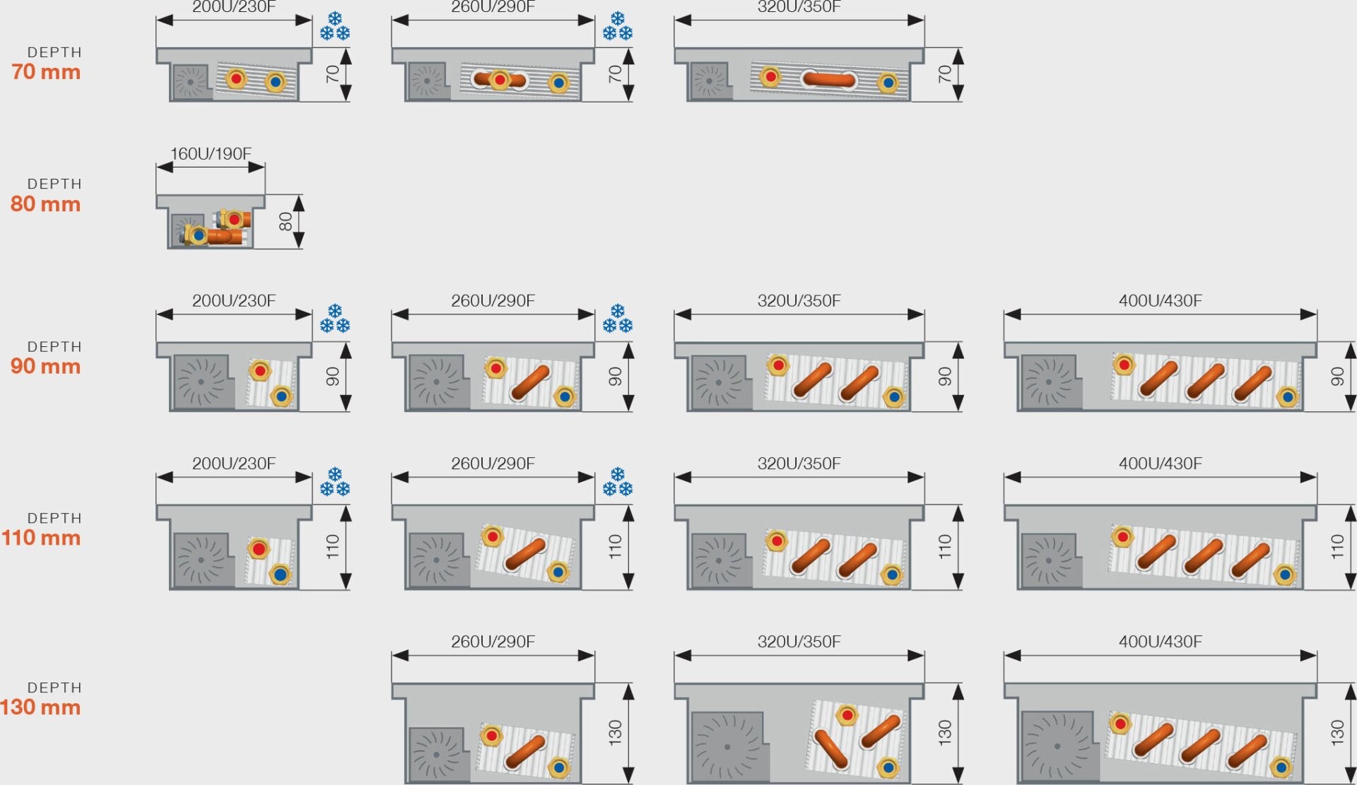 | Depth [mm] | 70, 80, 90, 110, 130 mm |