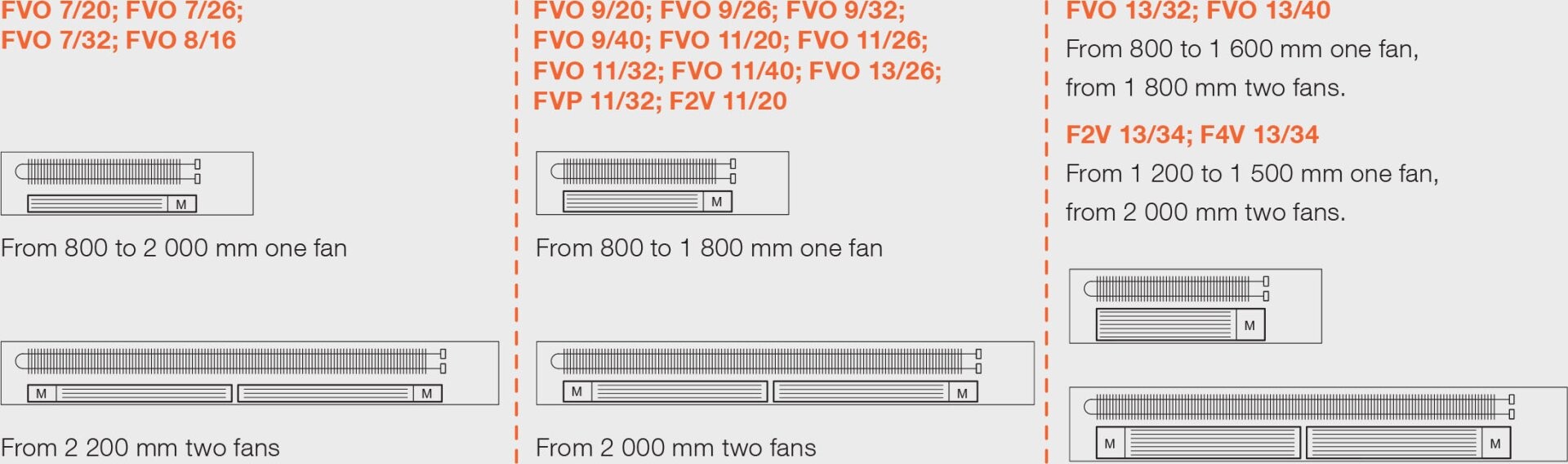 | Length | Poziom prędkości | Moc grzewcza | Zasilanie elektryczne / 24 V DC | Poziom ciśnienia akustycznego [dB(A)] | Wydajność akustyczna [dB(A)] |
