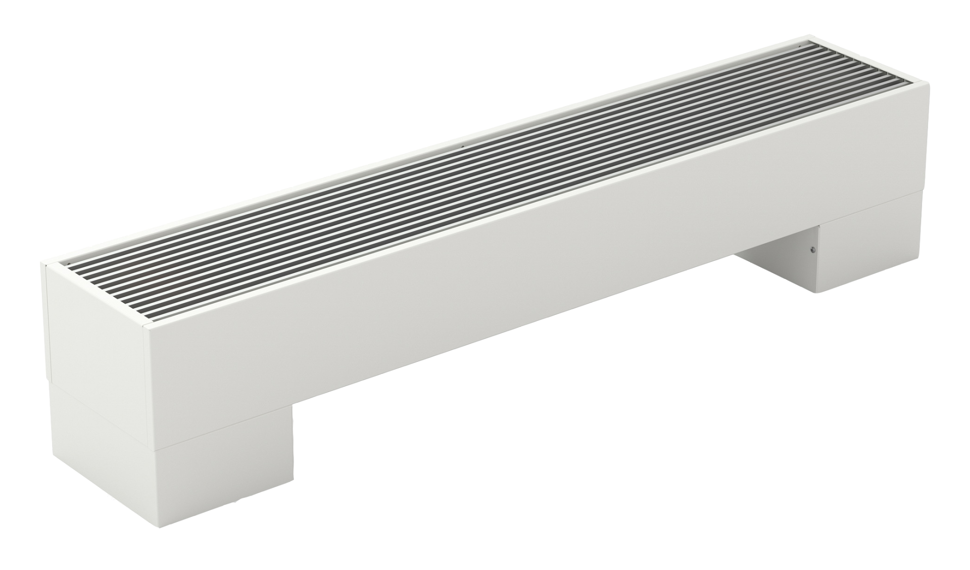 KORALINE Optimal-V LVO free-standing convector with fan, Length 200 cm, Height 15 cm, Width 18 cm, Steel casing white RAL 9016, Aluminium silver elox grille, non-lacquered heat exchanger.