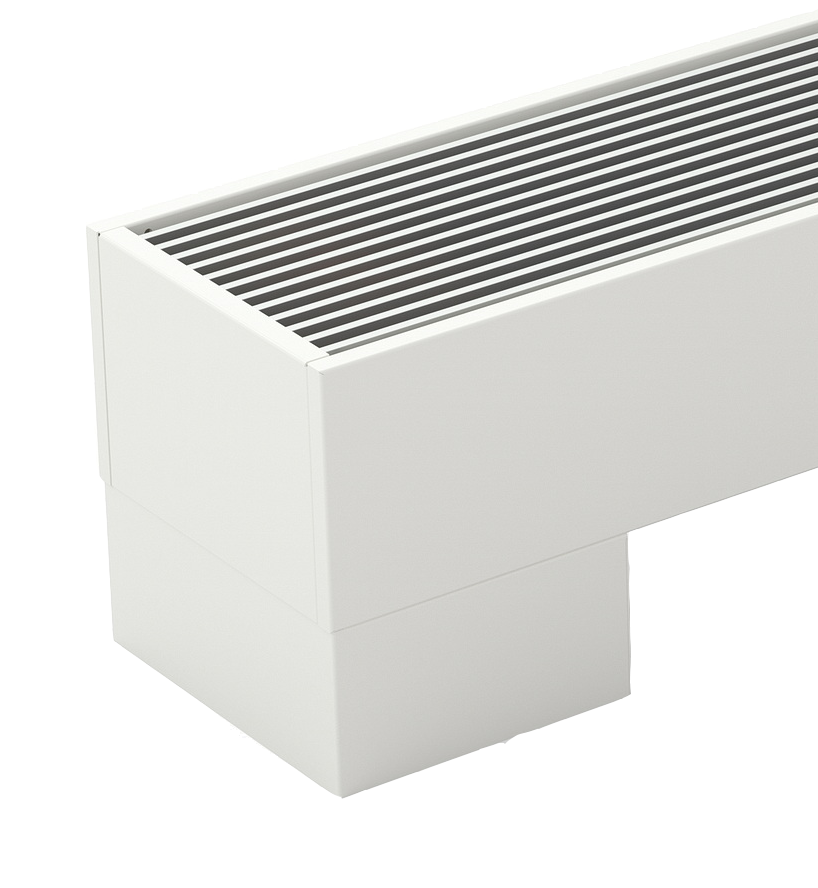 The KORALINE Optimal-V LVO height 150 mm, width 180 mm range of free-standing convectors is equipped with a specially designed Al/Cu heat exchanger and a set of low-energy, high-performance fans with minimal power consumption to ensure that the convectors achieve high efficiency even at low-temperature gradients. This type of convector is thus ideal for buildings with low-temperature systems such as heat pumps, solar systems, condensing boilers etc. The convectors can be controlled via BMS and due to their immediate response to changes in room temperature, very quiet operation and low surface temperature, they are suitable for use in family homes, apartment buildings and public areas.