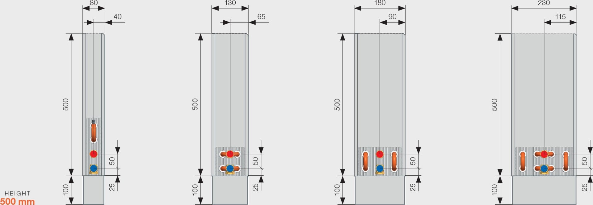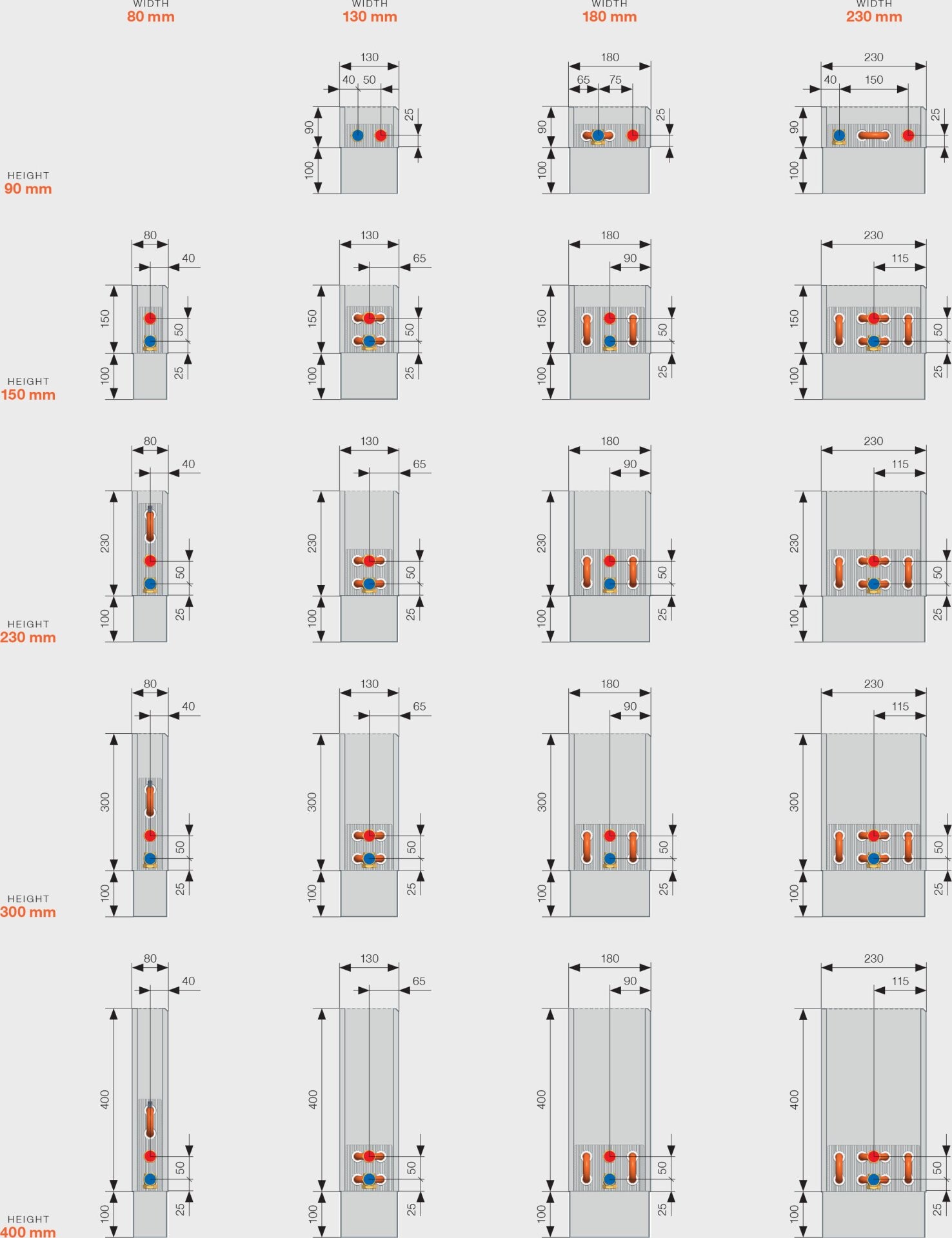 | Height [mm] | 90, 150, 230, 300, 400, 500 mm |