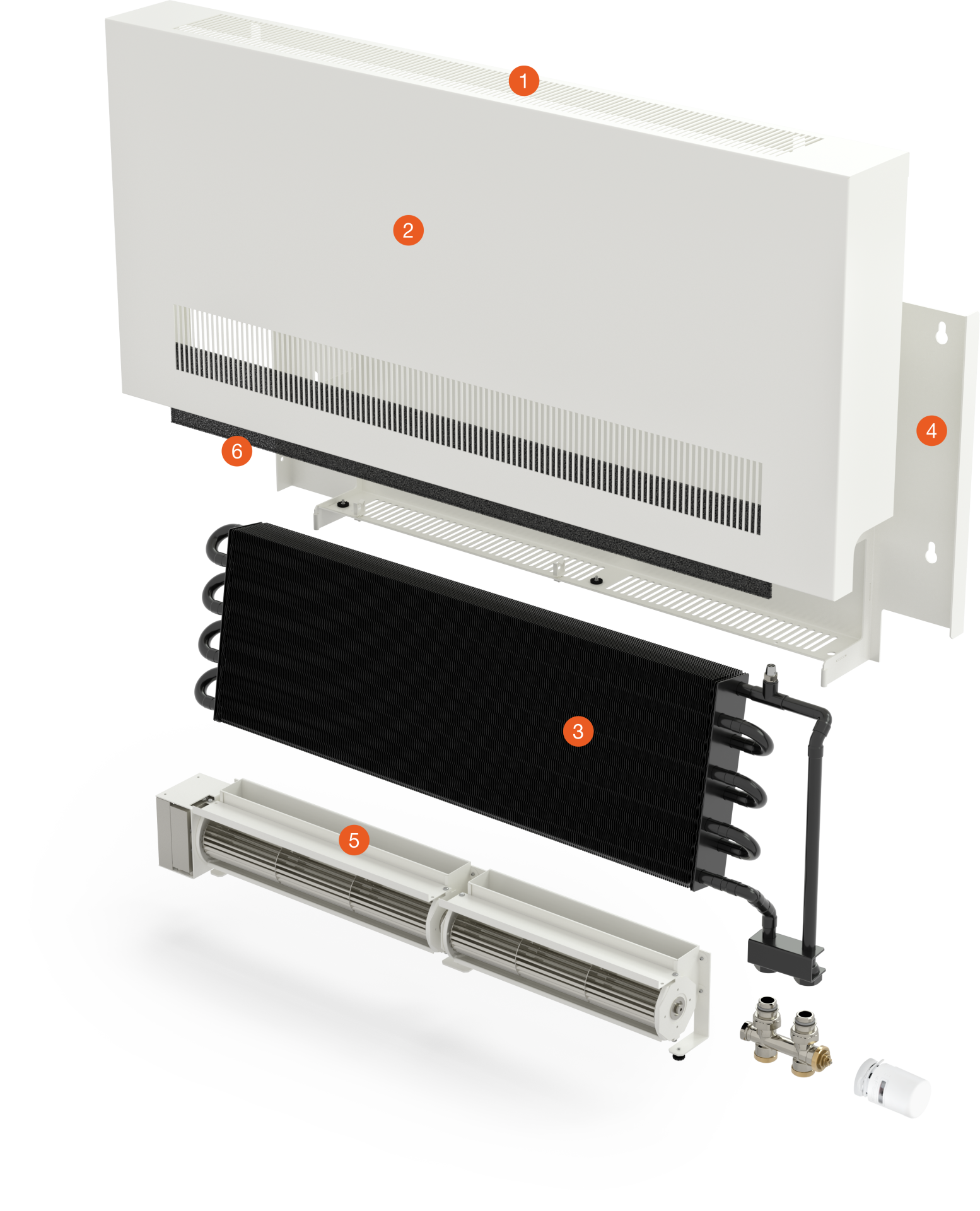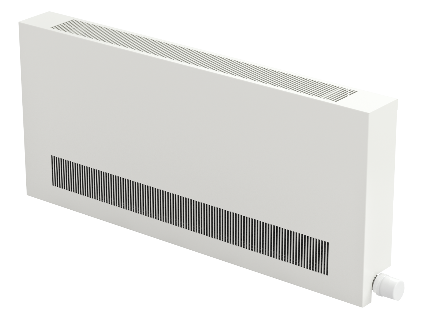 KORAWALL Optimal-V WVO wall-mounted convector is an efficient, energy-saving forced-convection heating unit and has a light cooling function. It is equipped with a set of high-performance, low-energy fans. Our wall-mounted units achieve high heating efficiency, even at low-temperature gradients. Convectors with forced convection are ideal for installation situations with heat pumps, solar-energy systems, condensing boilers, or as an additional heat source for underfloor heating. They have the advantage of being a source of pleasant heat during the seasonal transition periods of the year. If needed, they can provide a rapid ambient temperature increase. Their light-cooling ability offers an additional option in summer. Wall-mounted convectors with fans can be operated via BMS. They react to changes in ambient temperature immediately, have very quiet operation and low surface temperature. These features of wall-mounted convectors with fan make them ideal for installation situations involving not only family houses or apartments, but also for use in public buildings.