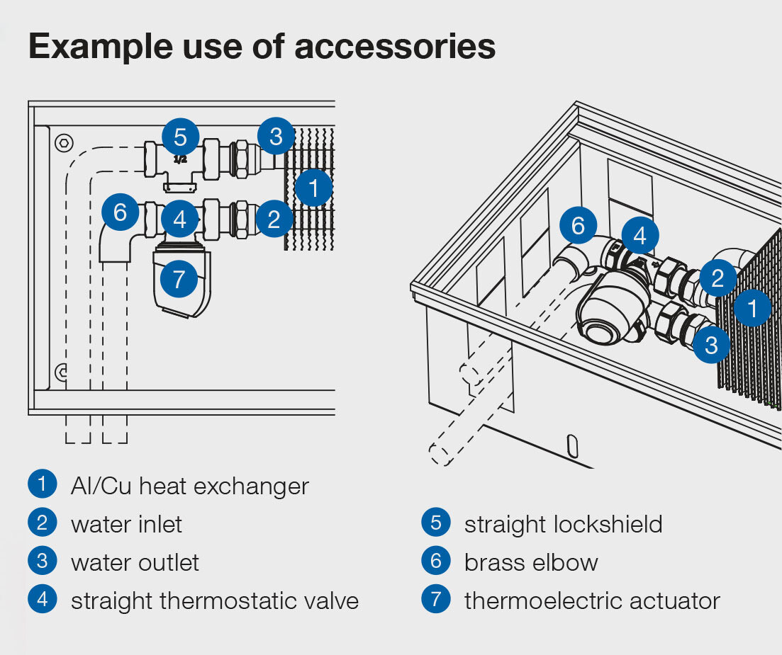 Regulation of the heating medium flow forms a central role in the correct control of convector heating output. Correct selection of regulation elements guarantees a comfortable ambient temperature and contributes to heating cost minimalization.
