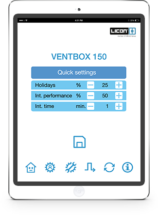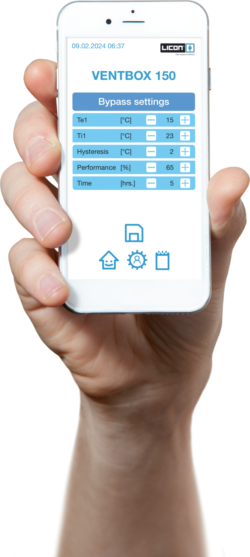 des pollens, elle dispose d’une extraction efficace de l’air vicié et de la vapeur d’eau, elle a une faible consommation d’énergie et réduit l’excès de CO2 et peut être contrôlée via une interface web. Avec l’unité VENTBOX 150, vous pouvez être sûr que votre maison disposera toujours d’un air frais et sain.
