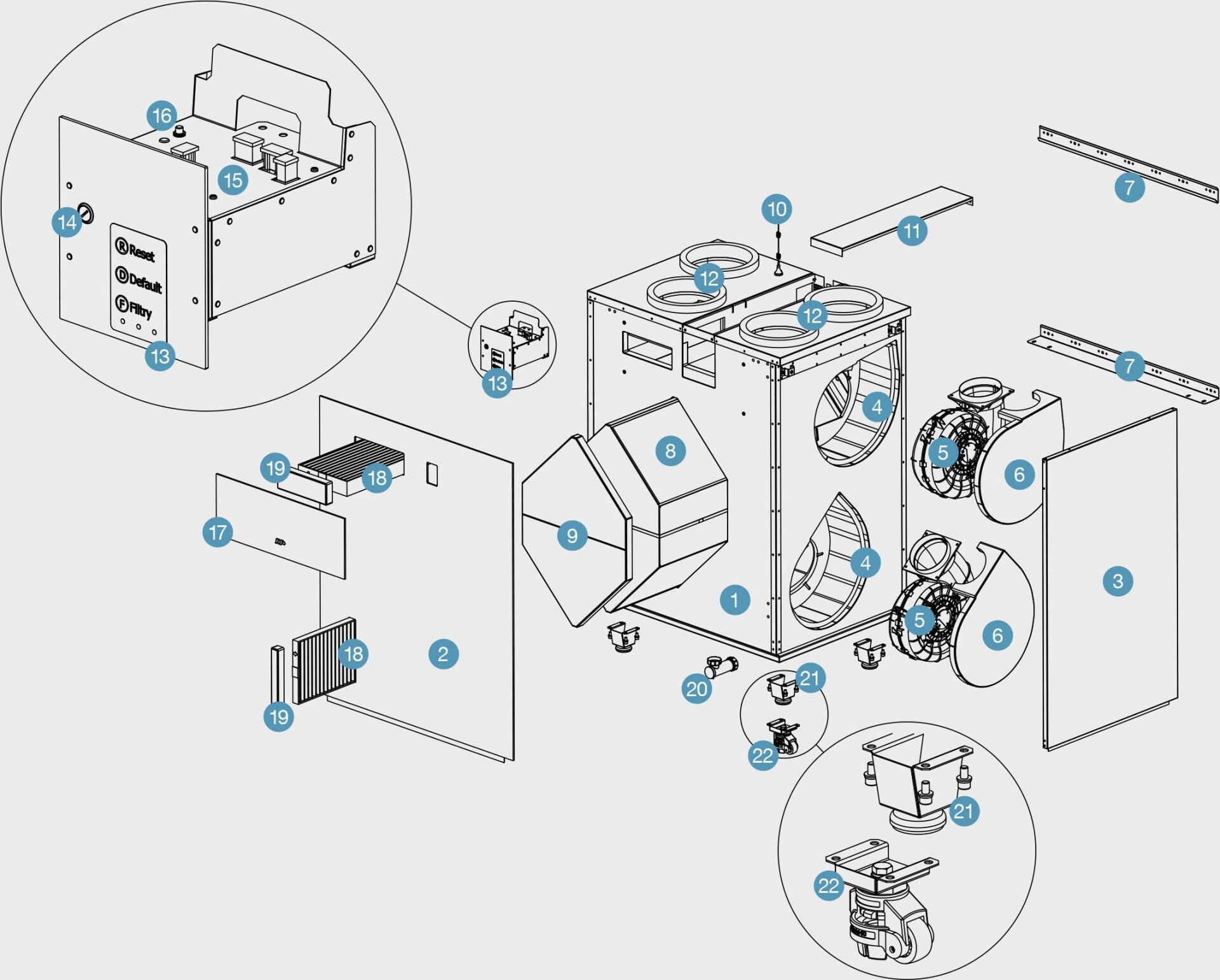 | Filters supply//exhaust (% of particles captured in a given filter class) | F7 pollen/odour ePM1 70 % (F7 odour optional) | |