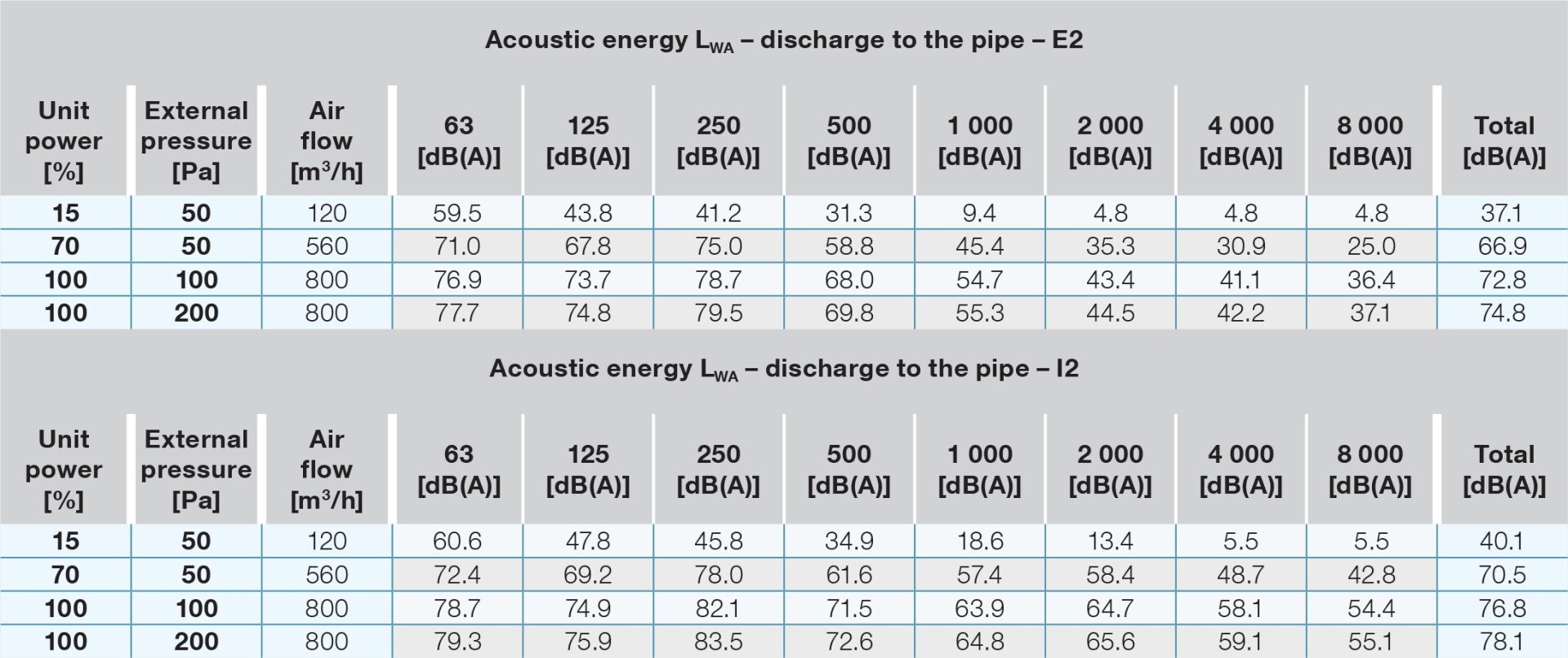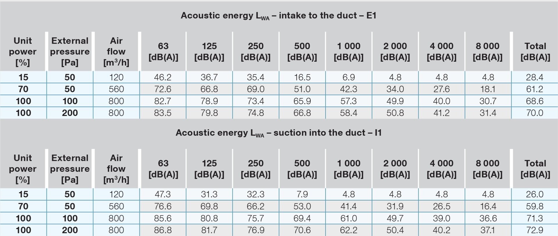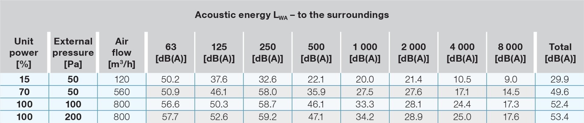 | Acoustic energy LWA [m³/h/Pa/dB] | 560 m³/h/50 Pa/49 dB | |